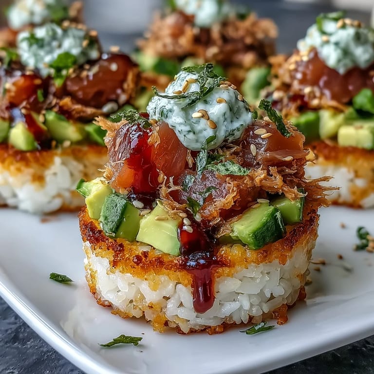 Save Sometimes, a sudden craving for both sushi and something crunchy hits at once, and that’s how this crispy rice salad was born. I remember the pop and sizzle of sushi rice crisping in the pan and the fragrant sesame oil drifting through my kitchen, enticing my curious neighbor to peek in and ask what smelled so outrageously good. There’s something deeply satisfying about mashing bold flavors and contrasting textures into one dish, especially when it starts with leftovers from a sushi night gone overboard. While arranging the crispy rice, I realized this dish quietly blends ease with playful assembly, almost like building edible art. Every bite feels adventurous, with spicy tuna winking through creamy avocado and tangy, herb-laced salad.