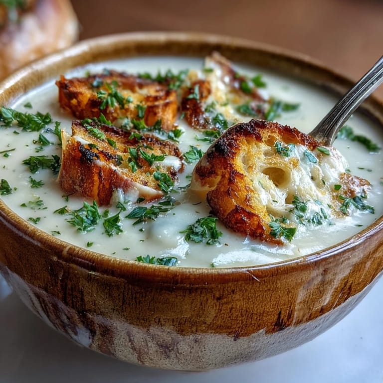 This soup is at its best served piping hot in warmed bowls, ideally alongside something with texture—crusty bread for dipping, a crisp green salad to cut through the richness, or both. I've also served it as the opening course before a simple roasted chicken, where it sets a warm, elegant tone without overwhelming the rest of the meal.