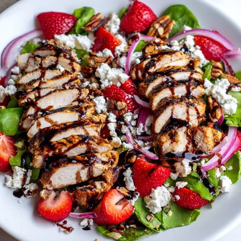 Save The first time I made this salad was on a whim during strawberry season when my farm share box was overflowing with berries. I had some chicken breasts defrosted and a bottle of balsamic that needed using, so I just started throwing things together. My husband took one bite and looked at me like I'd discovered fire, which honestly felt better than any compliment I've received in a restaurant kitchen.