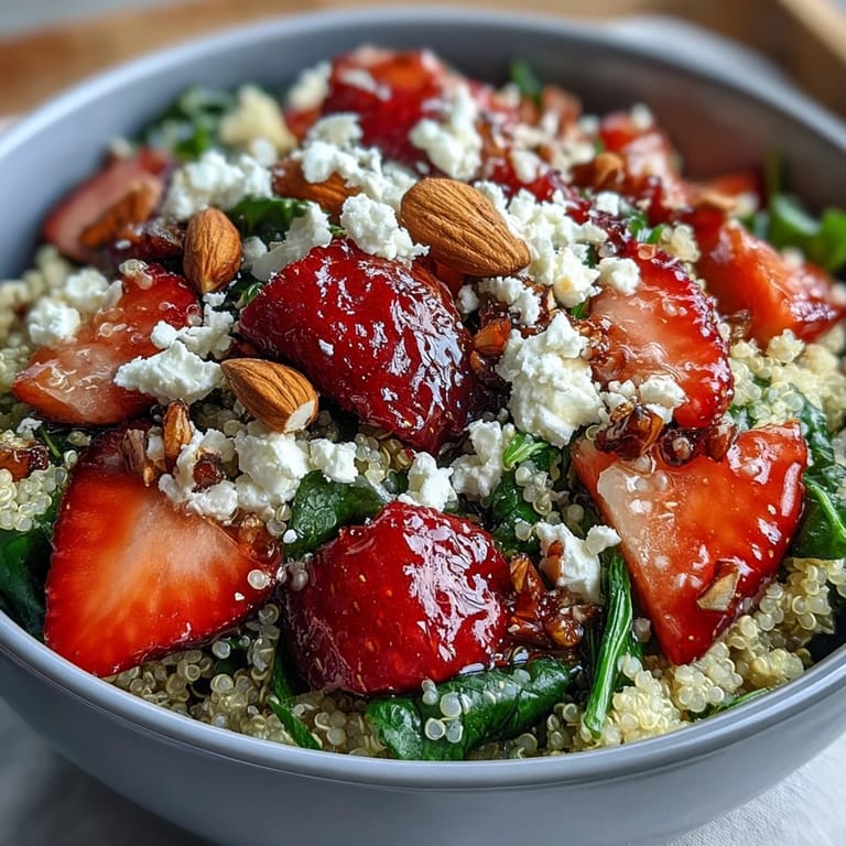 Save There's something about combining warm quinoa with cold berries that caught me off guard the first time—the temperature contrast, the way the feta melts slightly into the warm grains while staying creamy. I was standing in my kitchen on an unusually cool spring afternoon, uncertain if I had enough ingredients for lunch, when this salad practically assembled itself from what was in my fridge. What started as improvisation became one of those meals I now crave when the season shifts.